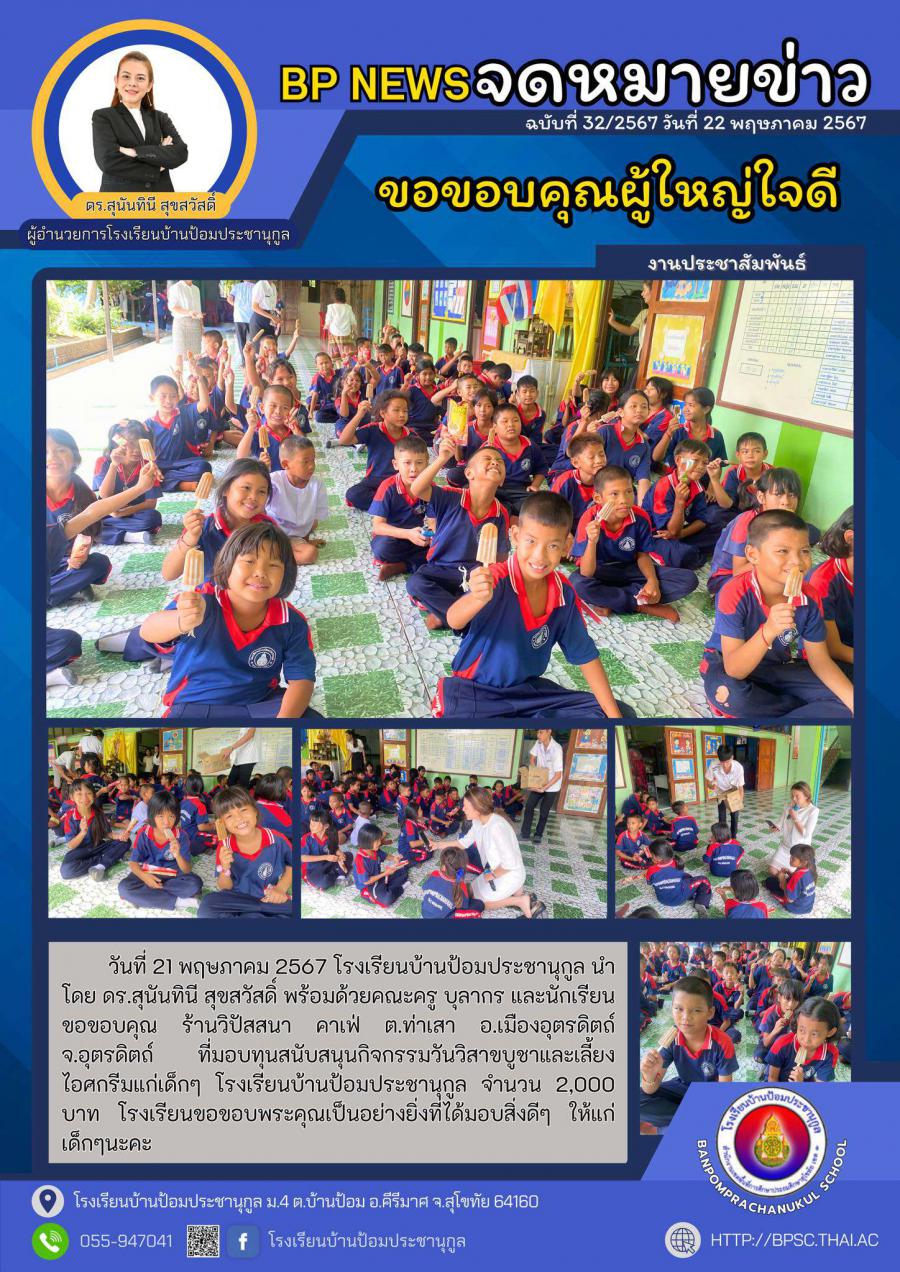 โรงเรียนบ้านป้อมประชานุกูล นำโดย ดร.สุนันทินี สุขสวัสดิ์ ผู้อำนวยการโรงเรียนบ้านป้อมประชานุกูล พร้อมด้วยคณะครู บุคลากร และนักเรียน #ขอขอบคุณ